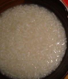 3. 煮粥:将大米洗净,放入锅中,加入适量的清水,大火烧开后转小火煮至半熟。