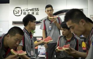 话音刚落,其他快递小哥纷纷点头赞同。于是,一场别开生面的“吃瓜大赛”就此展开。他们你一口,我一口,吃得津津有味。那场面,简直就像是一场欢乐的派对。